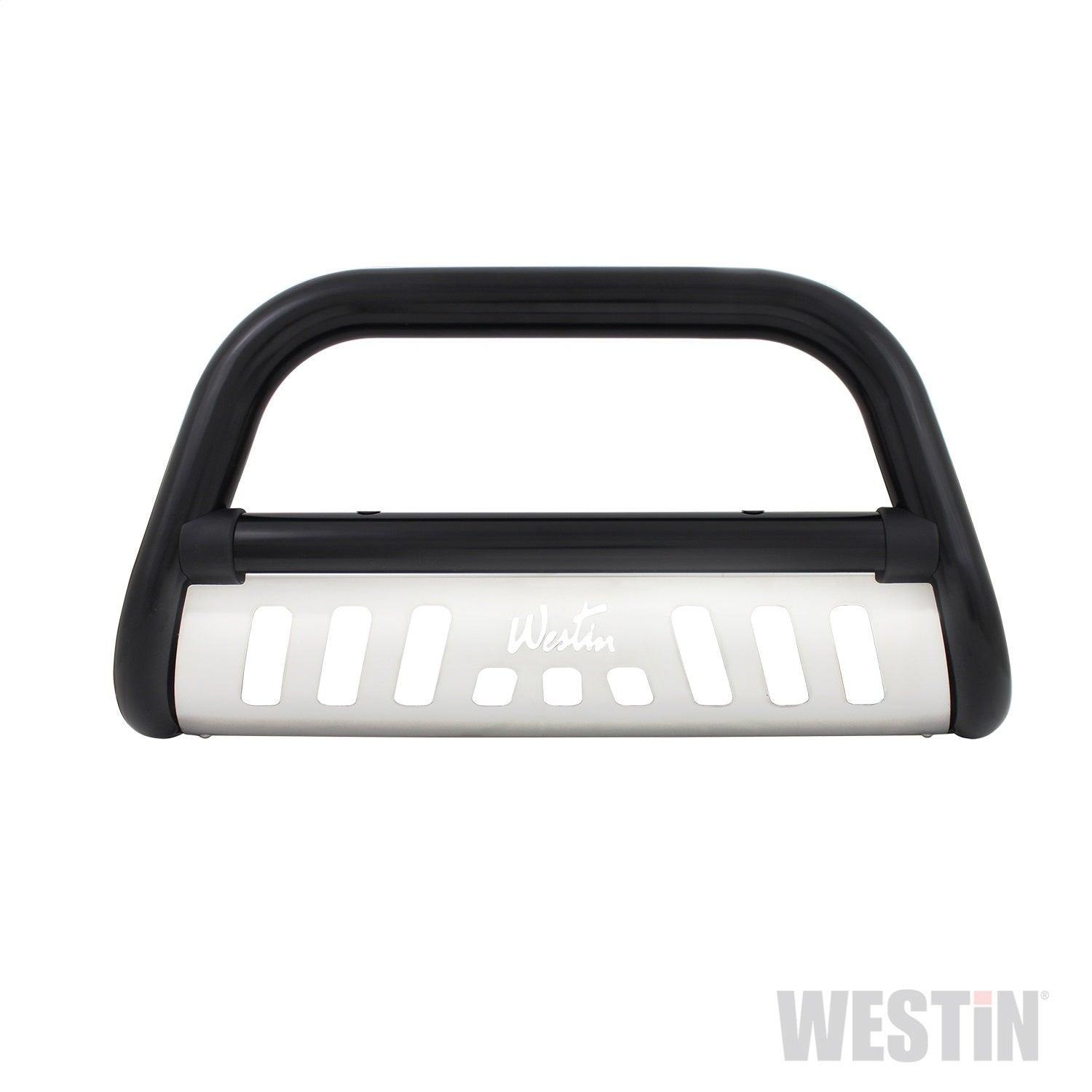 The Westin(TM) Ultimate Bull Bar is a front-end light bar made of 3in. diameter tubing for larger model trucks and SUVs and made of 2.5in. diameter tube for smaller trucks and SUVs. Product application is vehicle specific and comes complete with mounting kit. The Westin(TM)Ultimate Bull Bar features black molded caps on the crossbar welds for a finished and clean look. It features a stainless steel skid plate with a laser-cut Westin signature logo on it. Add a set of Westin(TM) Driving Lights for a complete customized look.