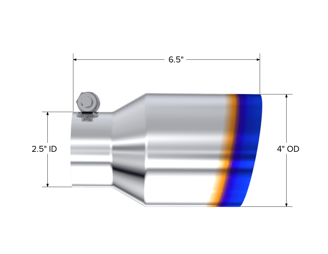 2.5" Inlet Exhaust Tip. T304 Stainless Steel, Burnt End.
