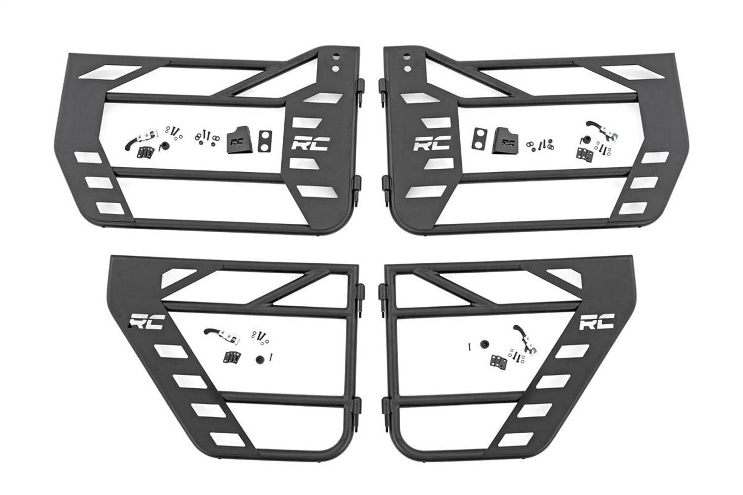 Put the wind in your hair and freedom at your fingertips with Rough Countrys Steel Tube Doors! These durable, steel doors give your vehicle an aggressive look while giving you increased visibility without sacrificing safety.Theres little in this world that can match the feeling of riding in a Jeep with nothing between you and the world around you! Rough Countrys easy-to-install tubular steel doors allow you to keep your occupants safe while enjoying the open air. These durable, 1.25in diameter tube steel doors with integrated latching system keep everyone contained and comfortable for the duration of the journey. Rough Countrys Tube Doors feature a high-quality, black powder coat thats designed to resist corrosion for a long lifespan of good looks. The simple bolt-on installation process makes them easy to install, allowing for a total transformation of your Jeep in no-time flat! Each front tube door Includes a mounting point to attach the factory mirrors.