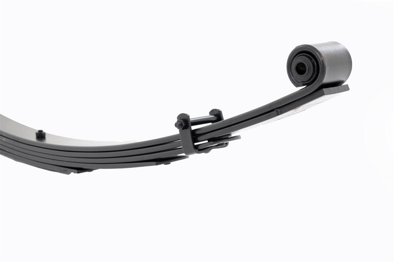 Added Lift Height and Ride Comfort. Take your suspension kit to the next level with Rough Country's Replacement Leaf Springs. Constructed from high-quality materials and designed specifically for the weight of your vehicle. This enhanced replacement spring will provide a factory-like feel while retaining your suspension lift height. Durable and Off-Road Ready. Rough Country's Replacement Leaf Springs are designed to tackle any terrain that they are faced with. Featuring a multi-leaf design and spring pads this reduces the friction and maximizes comfort. Each leaf pack utilizes tapered leaves for improved flexibility at their ends. Installation. Rough Country's Replacement Leaf Springs offer a 100% bolt-on installation estimated to take approximately 1-2 hours depending on vehicle condition. Simply remove the pre-existing leaf spring and use the stock hardware to equip your vehicle with this high-quality replacement. Lifetime Replacement Warranty. Rough Country's Replacement Leaf is backed with a 5-year replacement warranty towards manufacturer defects. As such, the product is protected from structural and workmanship damage after the date of purchase. With our industry-leading warranty give yourself peace of mind when using Rough Country's Suspension products!